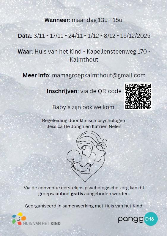 In onze kleine mamagroep kan je je ervaringen delen met andere kersverse mama’s, en steun vinden om samen op weg te gaan in deze nieuwe levensfase.