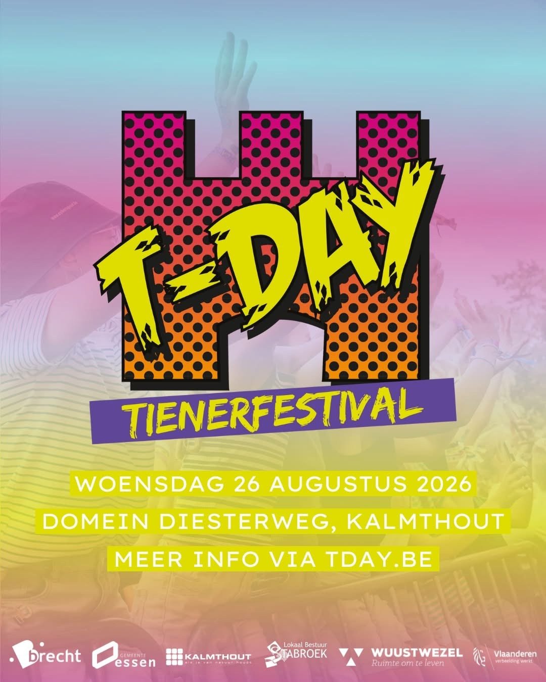 In 2026 organiseren we de 17de editie van T-DAY. Er stonden de vorige jaren al heel wat straffe namen op ons podium: Jebroer (2017), Camille (2022), Berre (2023), Pauline Slangen (2023), Francisco Schuster (2024), Fabiow (2025) en SHY (2025). 🎤 Wie er deze zomer op ons podium zal schitteren, ontdek je binnenkort!