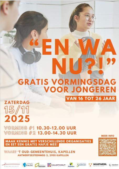 Zaterdag 15 november organiseren de jeugddiensten van Brasschaat, Brecht, Essen, Kalmthout, Kapellen, Stabroek en Wuustwezel de tweede editie van het evenement “En wa nu?!” Gratis vormingsdag voor jongeren.
