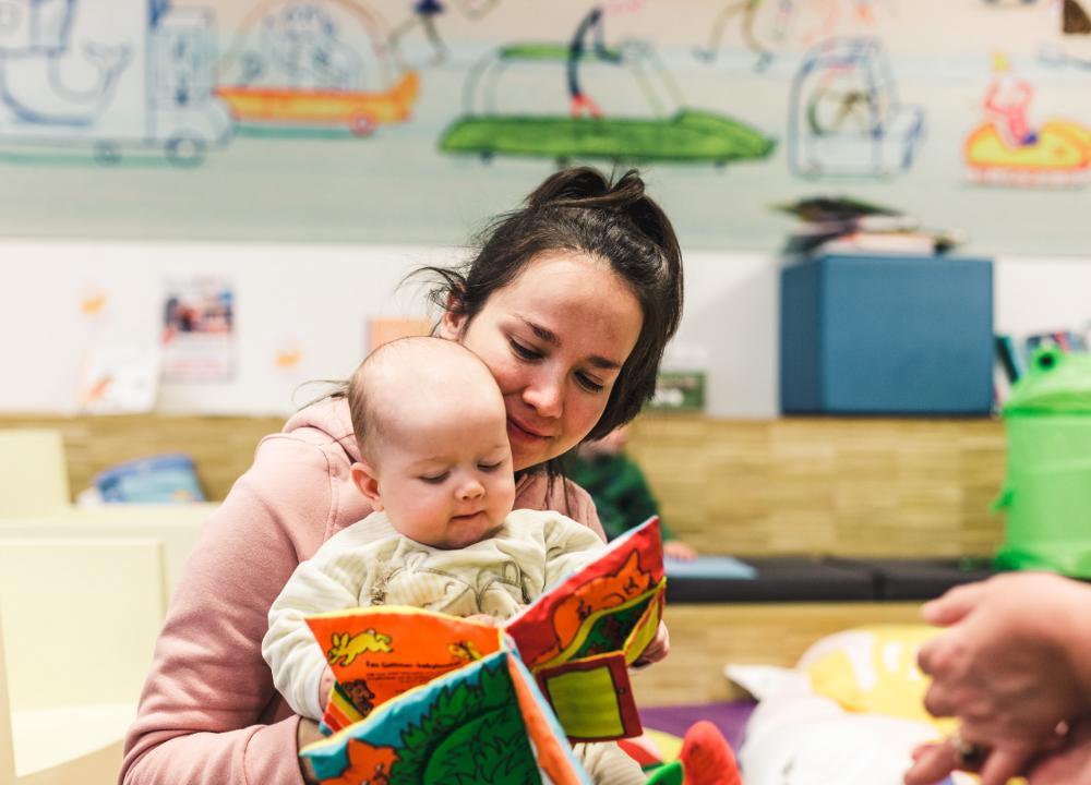 Terwijl de (groot)ouders samen iets drinken, kunnen de kinderen samen spelen… In de bib deze keer!