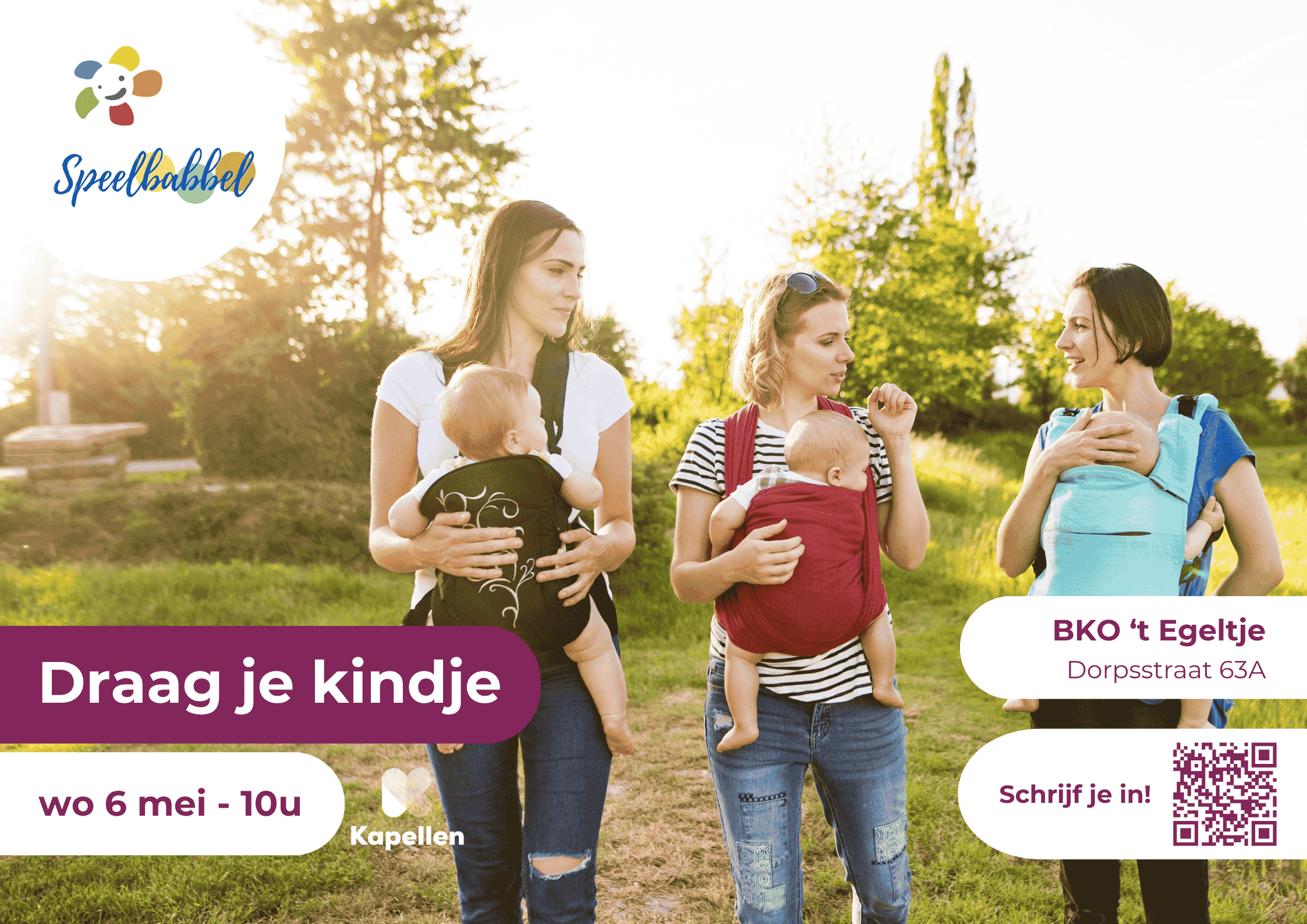 Babydragen is niet alleen praktisch, het is ook een prachtige manier om dicht bij je kindje te zijn. Tijdens de speelbabbel spécial Draag je kindje ontdekken ouders de voordelen van dragen, van ergonomie tot comfort. We laten verschillende draagdoeken en dragers zien alsook manieren om je kindje te dragen, we geven tips voor veilig dragen en helpen je graag met het proberen en instellen.