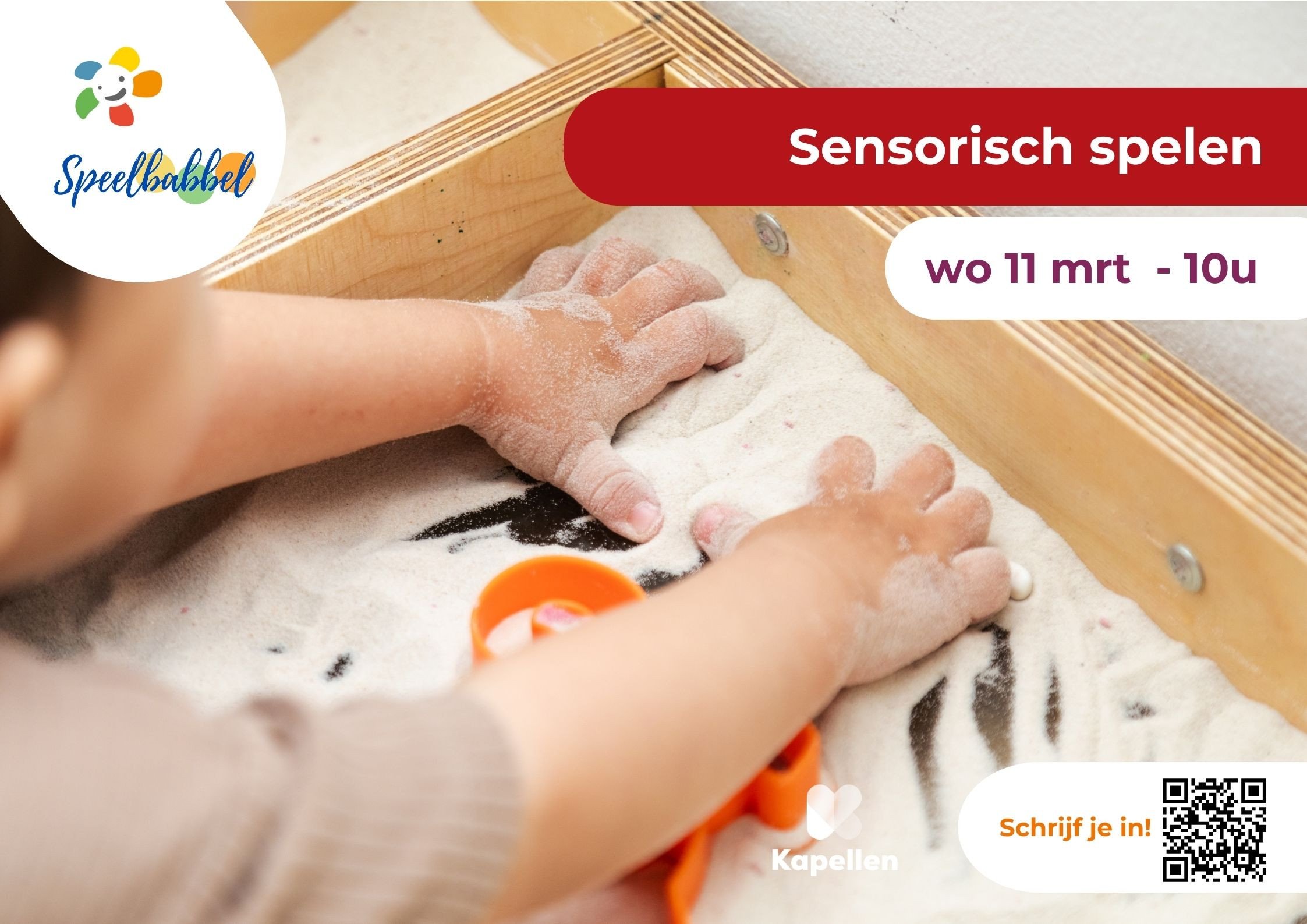 Kleine handjes willen voelen, knijpen, ontdekken en onderzoeken. Tijdens de speelbabbel spécial Sensorisch Spel creëren we een veilige omgeving waarin kinderen kunnen kennismaken met verschillende materialen: zacht, knisperend, nat, droog, kleurrijk of geurend.