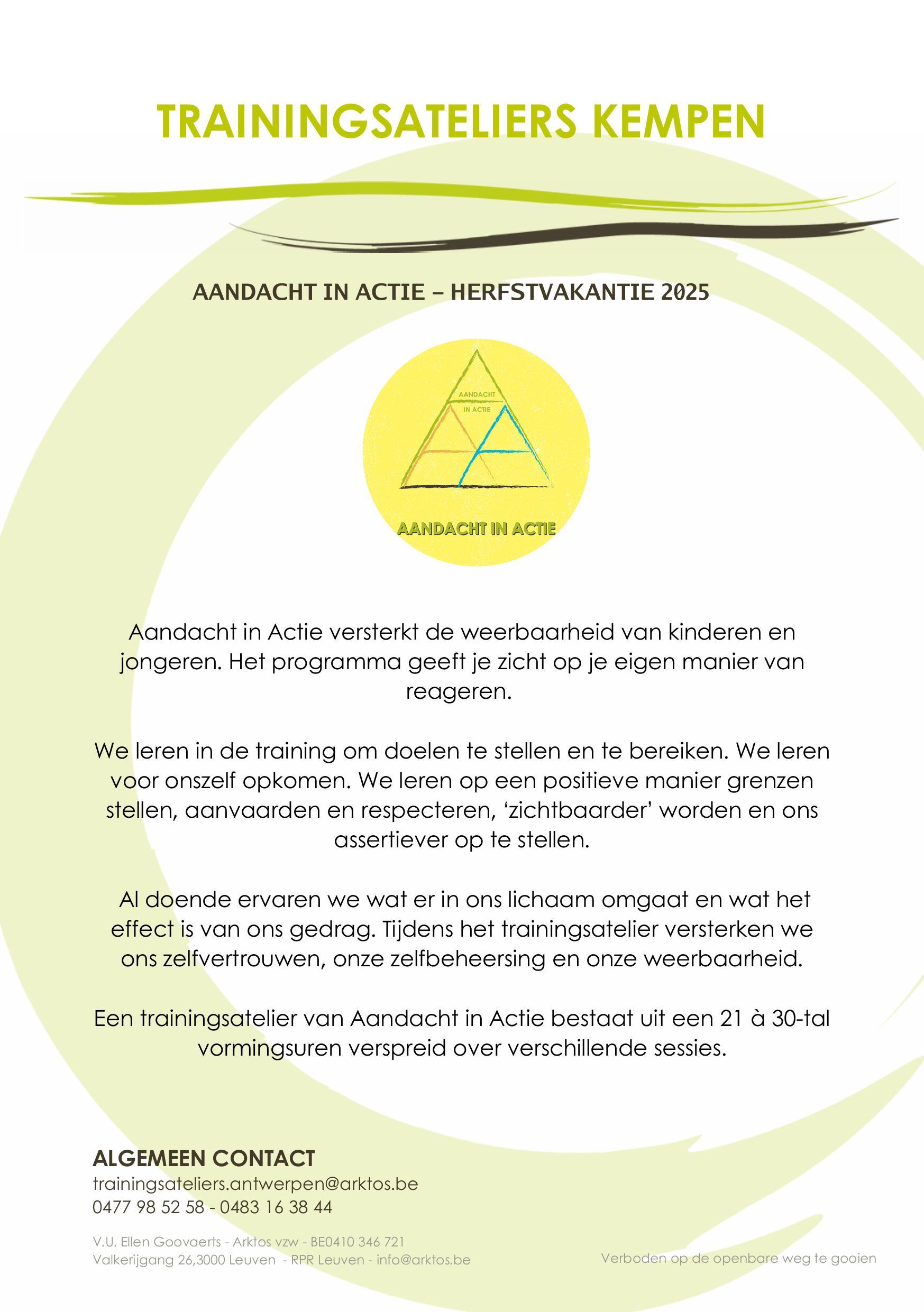 Contacteer Arktos via 03 202 30 00 of trainingsateliers.antwerpen@arktos.be.